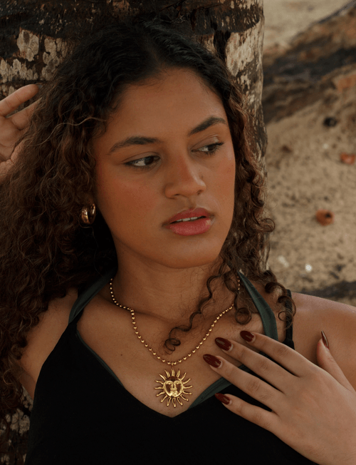 Una pieza versátil que resalta tanto en lo cotidiano como en los momentos especiales, un recordatorio de que, incluso tras la tormenta, siempre vuelve a salir el sol. Su dije en forma de sol, bañado en oro 18k, refleja la luz con delicadeza, mientras su cadena fina equilibra elegancia y sutileza. Perfecto para llevar solo o combinado, es una pieza que irradia energía, calma y brillo natural.